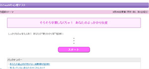 言わずと知れた検索エンジンYahoo!JAPAN。その占いカテゴリ(四柱推命とかタロットカードとか夢実現 仙台無料占い 星座とか)のなかにある「無料占い-心理テスト」の項目です。毎回のテーマが変わっていき、第2、第4金曜日に更新されているようです。心理テストのサイトのなかでも、これだけの更新頻度を行うのはマレです。訪れたたびに、新しい心理テストができるでしょう。それ以外にも20項目程度の心理テストバックナンバーもあり、過去の心理テストをすることもできます。